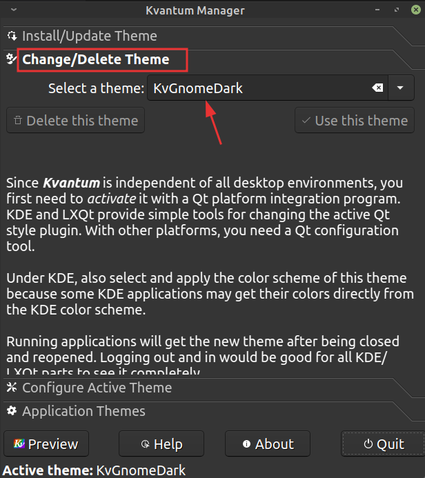 kvantummanager,换主题(皮肤),如图我已经选好了dark主题皮肤