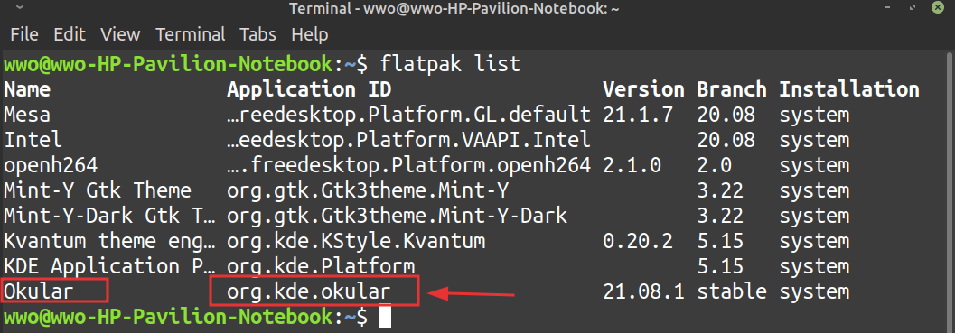 terminal中运行flatpak list,每个软件名对应着一个application id